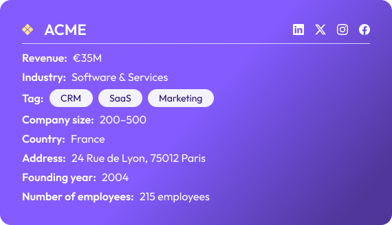 Enrichment adds useful details to your contacts and companies (emails, roles, company info, websites, industries, etc.) so your CRM stays complete and up to date.